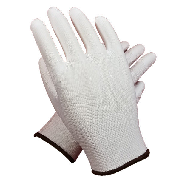 Lightweight White Seamless Polyester shell with White Polyurethane Palm Coated Gloves